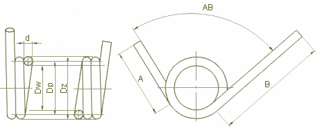 d - średnica drutu, AB - kąt między ramionami A i B